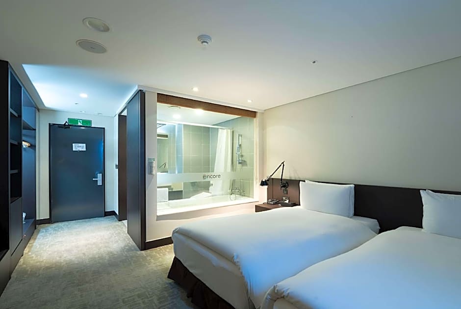 This twin room's standout feature is the hot tub. Offering free toiletries and bathrobes, this twin room includes a private bathroom with a bath, a bidet and a hairdryer. The air-conditioned twin room offers a TV, a tea and coffee maker, a safe deposit box, pajamas as well as city views. The unit has 2 beds.